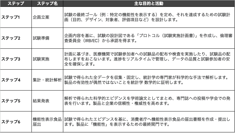 ヒト試験の流れを6ステップで徹底解説!企画から機能性表示食品の届出まで徹底解説